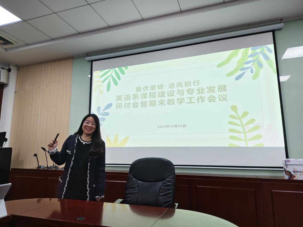 12月26日下午,英语系于第二行政楼308会议室召开期末工作会议,会议围绕“英语专业课程建设与发展”展开研讨,由系主任程瑜瑜老师主持,英语系全体教师参加会议。