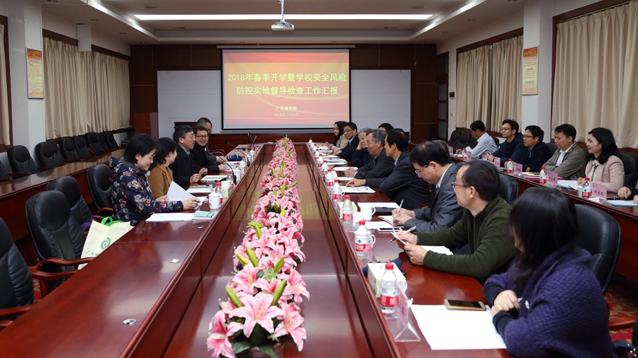 3月8日,以省委教育工委委员、厅党组成员、巡视员赵康为组长的省教育厅督导组一行5人莅临我校,对我校2018年春季开学暨学校安全风险防控进行实地督导检查。我校在第二行政楼208会议室召开2018年春季开学暨学校安全风险防控实地督导检查工作汇报会。我校校长杨文轩教授,党委书记吕泉荣,常务副校长孙云,董事长助理、工会主席刘炳荣,副校长刘根正、张忠福、黄耀明、王真、欧洁梅,以及各有关部门负责人出席汇报会。